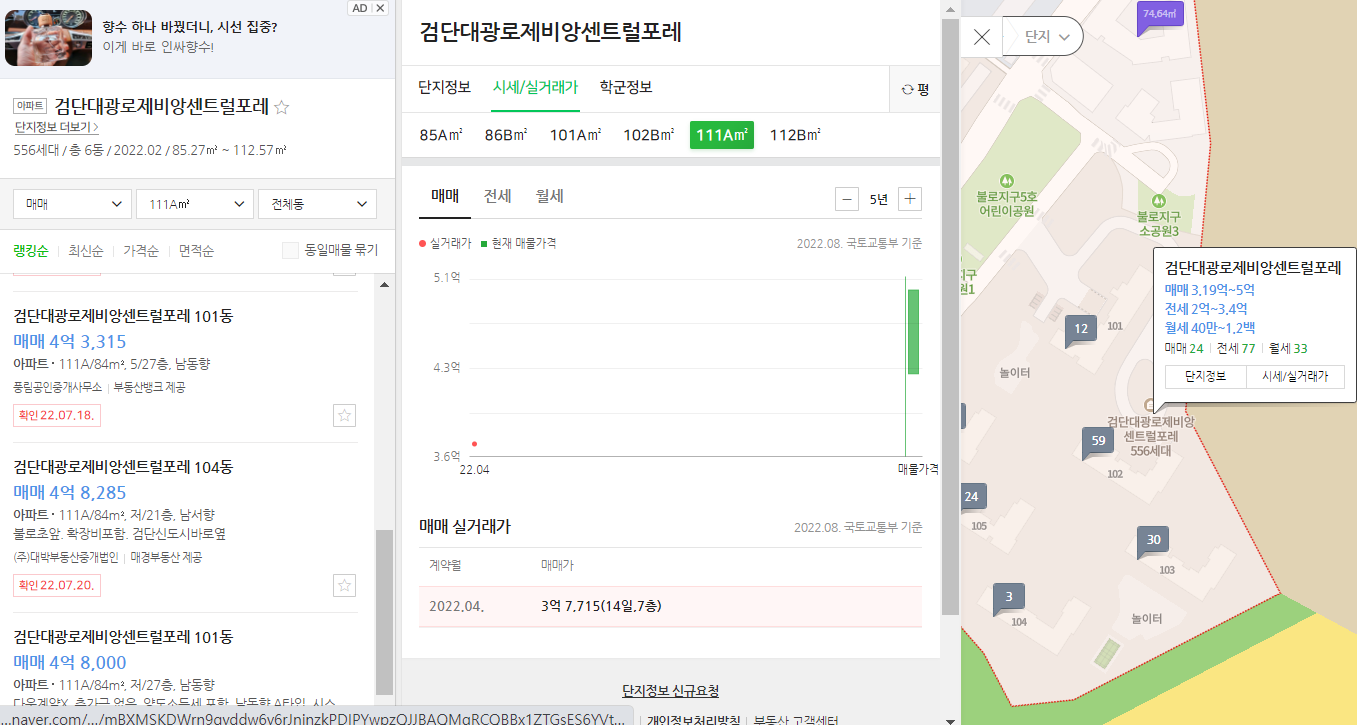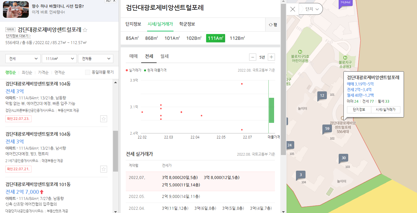 📈비교 단지 실거래가, 매매 호가 및 전세시세